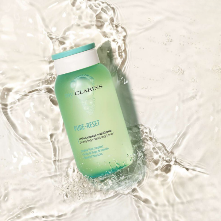 الوصفة النباتية الخاصة بك، خالية من الفثالات والبارابين والكبريتات، للحصول على بشرة صحية خالية من اللمعان وذات ملمس ناعم. خطوة أساسية في روتين My Clarins للتحكم في اللمعان.