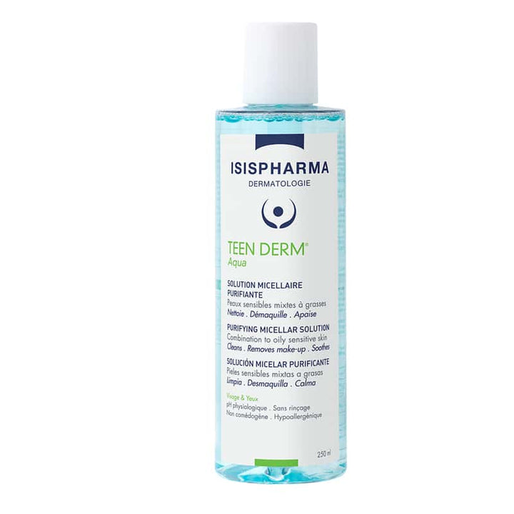 يساعد ماء Teen Derm® Aqua micellar ، إلى جانب منتجات أخرى من مجموعة Teen Derm® ، على تقليل عيوب البشرة بشكل واضح.