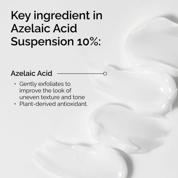 Azelaic Acid Suspension 10% هو تركيبة كريمية لتفتيح البشرة تستهدف البقع واللون غير المتساوي للبشرة وتحسين ملمسها بشكل ملحوظ. تحتوي على تركيز عالٍ من حمض الأزيليك، وهو مضاد أكسدة طبيعي وفعال، مما يجعل هذا المنتج لطيفًا بما يكفي للاستخدام اليومي ضمن روتين العناية بالبشرة. التركيبة غير كوميدوغينيك ومناسبة لجميع أنواع البشرة.