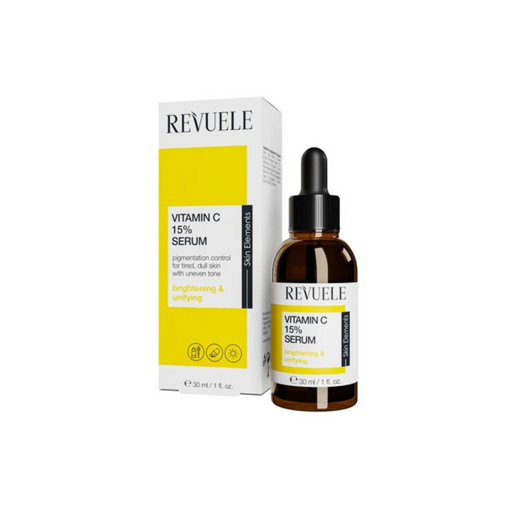 سيروم ريفويل بفيتامين C بنسبة 15% هو منتج قوي مضاد للأكسدة يستهدف بكفاءة عدة مشكلات في البشرة مثل البهتان، التصبغات، تغير لون البشرة، بالإضافة إلى ملمس البشرة غير المتجانس والخطوط الدقيقة. يعمل على تعزيز إنتاج الكولاجين ليمنح البشرة مظهرًا مشدودًا ويساهم في إبطاء ظهور التجاعيد. عند استخدامه بانتظام، يساهم السيروم في تحسين مظهر البشرة بشكل واضح من خلال تقليل آثار فرط التصبغ وتعزيز النقاء والإشراقة بشكل عام.
