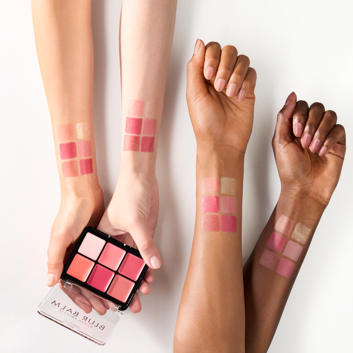 تحتوي هذه اللوحة على 4 درجات رائعة من أحمر الخدود، وأحمر خدود بتأثير الإضاءة، وإضاءة كريمية، جميعها سهلة التطبيق والدمج حتى باستخدام الأصابع!