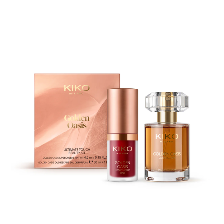 تحتوي مجموعة اينل تاتش غولدن أوايسس من كيكو ميلانوعلى: كيكو ميلانو تنت 2 في 1 للشفاه والخدود غولدن أوايسس كيكو ميلانو عطر عود اسكيب أو دو بارفان للنساء 30 مل غولدن أوايسس مثالية لإكمال كل إطلالة بلمسة نهائية ساحرة. النتيجة: مجموعة رائعة تترك البشرة بعبق شرقي وتمنح الشفاه والخدود كل جمال الصحراء التي دفأتها الشمس، هدية مثالية لتفاجئ نفسك والآخرين