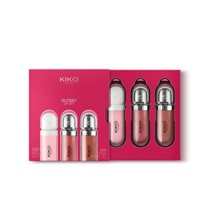 مجموعة ملمع الشفاه غلوسي ليبس من كيكو ميلانو تحتوي على 2 ملمع شفاه مرطّب بتأثير ثلاثي الأبعاد ولمسة نهائية لامعة .تركيبته الناعمة والحسية تذوب على الشفاه وتتركها ناعمة، ومشرقة. تحتوي المجموعة على: