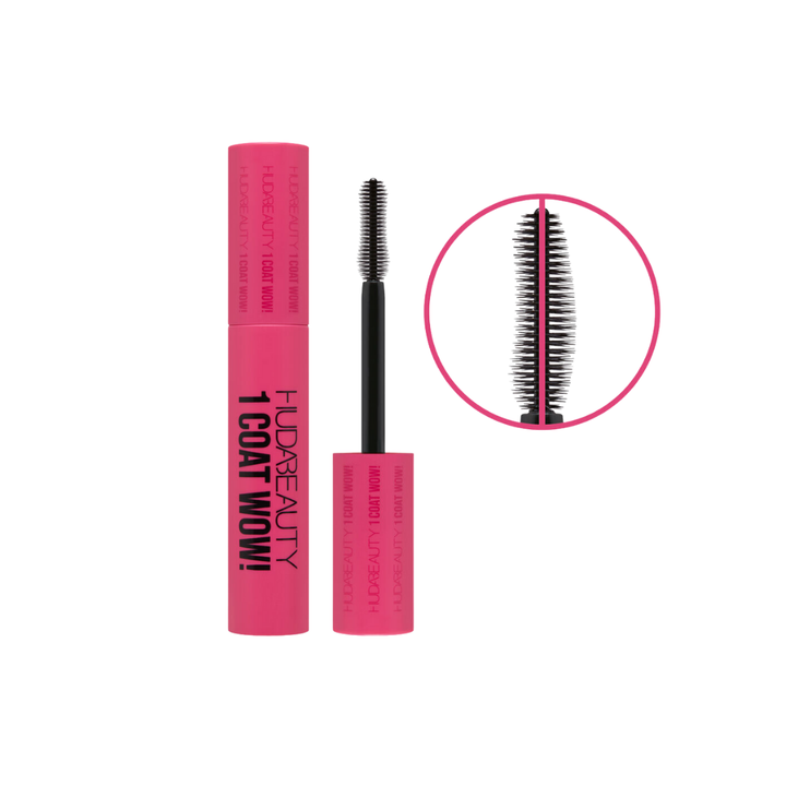 إجابتك لرموش فورية، كثيفة، ودراماتيكية في ثوانٍ! الفرشاة المبتكرة ذات الوجهين والتركيبة تغطي وتحدد كل رمش لمنحك تجعيدًا ضخمًا، طولًا فوريًا، وحجمًا إضافيًا! ماسكارا "هدى بيوتي مسكارا 1 كوت واو!" تجعل التطبيق السريع سهلًا للغاية. استعدي لتأثير "واو"!