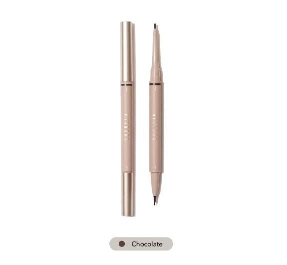 Up your brow game from every angle with this double-ended brow pencil. One side features a creamy, matte, waterproof tip designed very thinly for precise lines that mimic your natural hair. The other end provides a luxurious liquid that is water, sweat and oil resistant, infused with multiple pigments for a well-rounded shade. And what's more magical? This pencil is designed to suit all eyebrow types and skin tones!