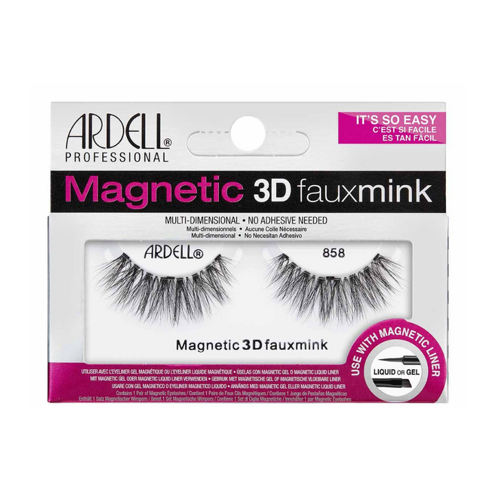 رموش رائعة مع رموش Ardell المغناطيسية، 3D Faux Mink 858! تتميز بطول متدرج وألياف رموش ناعمة وفاخرة ترقص مع كل غمضة عين. كثافة وطول غير مقيد مع أطراف مدببة دقيقة ولذيذة. أنيقة دون عناء! تعمل بشكل أفضل مع محددات الرموش المغناطيسية المفضلة لديك من Ardell.