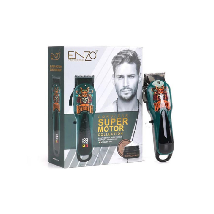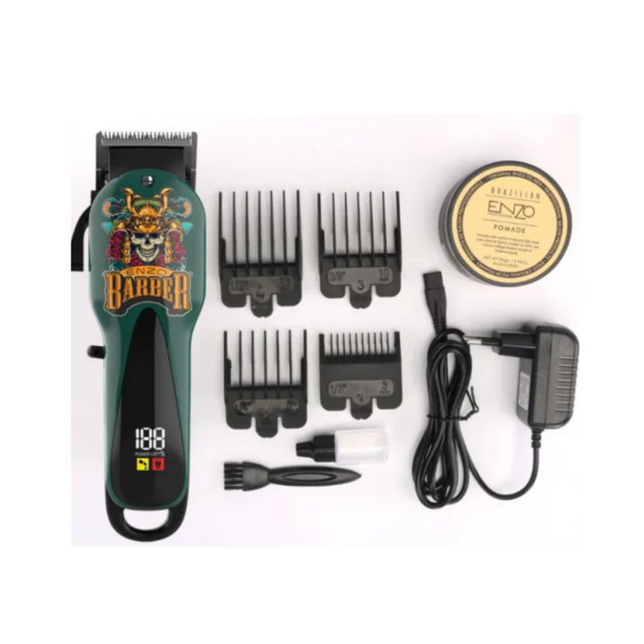 ماكينة حلاقة احترافية من إنزو، مصممة لقص الشعر والتدريجات وإزالة الكثافة بدقة عالية.