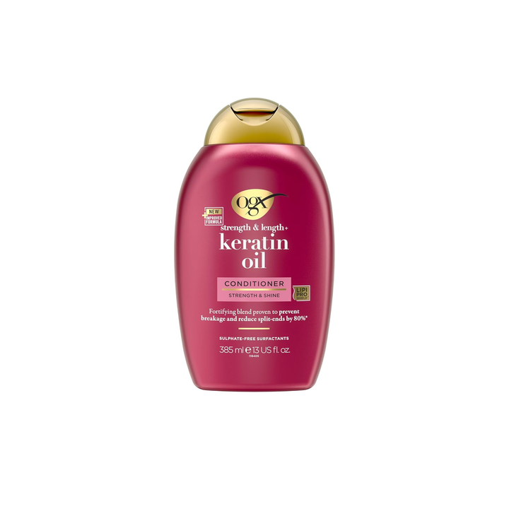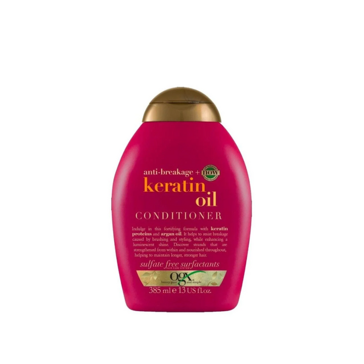 بلسم او جي اكس بزيت الكيراتين يعمل على تغذية الشعر وترطيبه بعمق، ويعيد له نعومته ولمعانه الطبيعي. يساعد على تقوية الشعر التالف والتقليل من التقصف، ويتركه سهل التسريح وحريري الملمس.