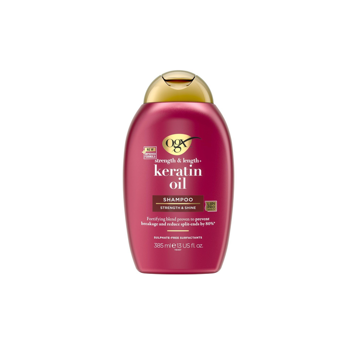 شامبو او جي اكس بزيت الكيراتين يساعد على تقوية الشعر وإعادة حيويته ونعومته. يساهم في ترميم الشعر التالف ويقلل من الهيشان، مما يجعل الشعر أكثر لمعاناً وسهولة في التسريح. مثالي للشعر الضعيف والمتقصف.