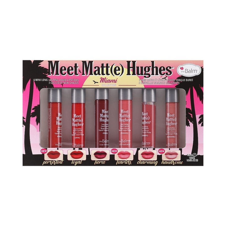 حان الوقت لالتزام طويل الأمد مع ميت مات هيوز ميني، هذه المرة في ميامي - مكان مشمس هذا الإصدار الناعم هو عبارة عن مجموعة من ستة أحمر شفاه سائل صغير طويل الأمد بألوان استوائية مستوحاة من حالة الشمس المشرقة. تتضمن المجموعة ثلاثة ألوان جديدة: ثابتة وجريئة وسيم. احتفل في المدينة حيث تشتعل الحرارة واعلم أن لون الشفاه الخاص بك سوف يستمر طوال الليل!