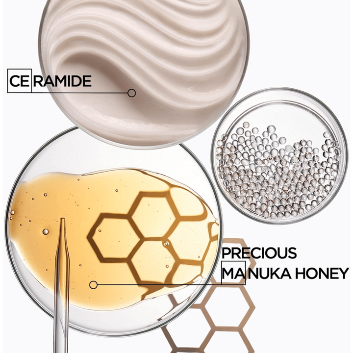بمزيج فريد من المكونات المغذية، منها: عسل المانوكا، الجليسرين والسيراميد.