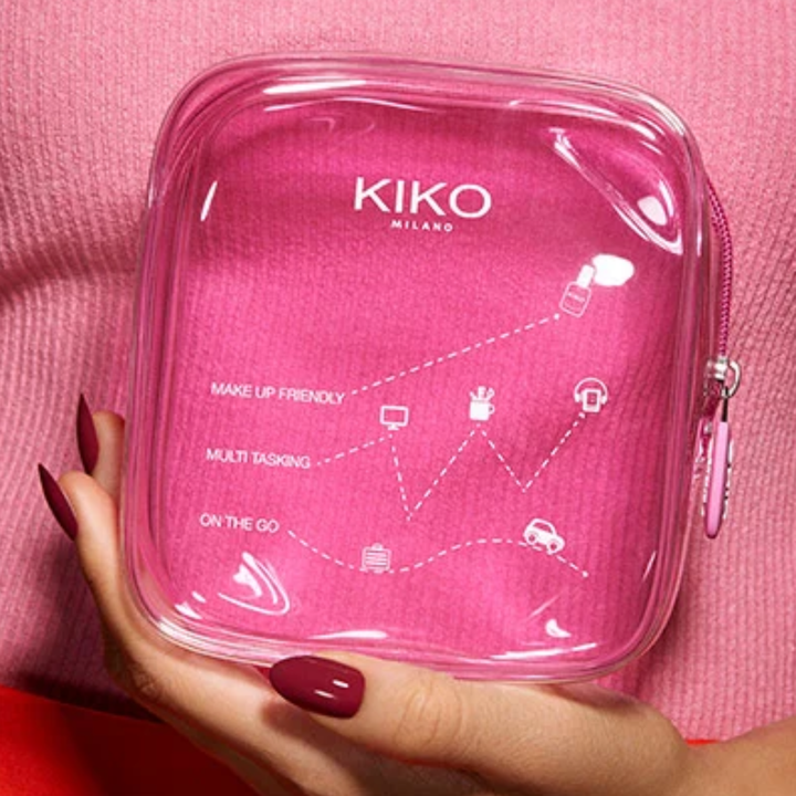 - يأتي في لون زهري فريد مزدان بشعار علامة KIKO MILANO المنقوش مع سحاب مطاطي، ويُعتبر مثالياً لتنظيم لوازم المكياج بلمسة من الفخامة!